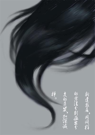 3、新建数层,用同样的方法分别画出分支的头发,加深减淡。