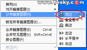 在图层面板中将三个或更多的图层链接起来。选取“图层”菜单下的“分布链接图层”的子菜单中选择这些图层内容的分布方式,如“顶边”可从每个图层的顶端像素开始,间隔均匀地分布链接的图层(图20)。