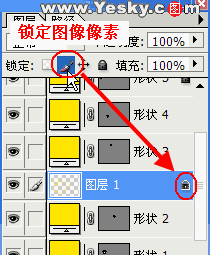 用笔刷绘画的像素为了防止它被修改,可以使用“锁定图像像素”按钮来将图层锁定为半锁定状态(图23)。