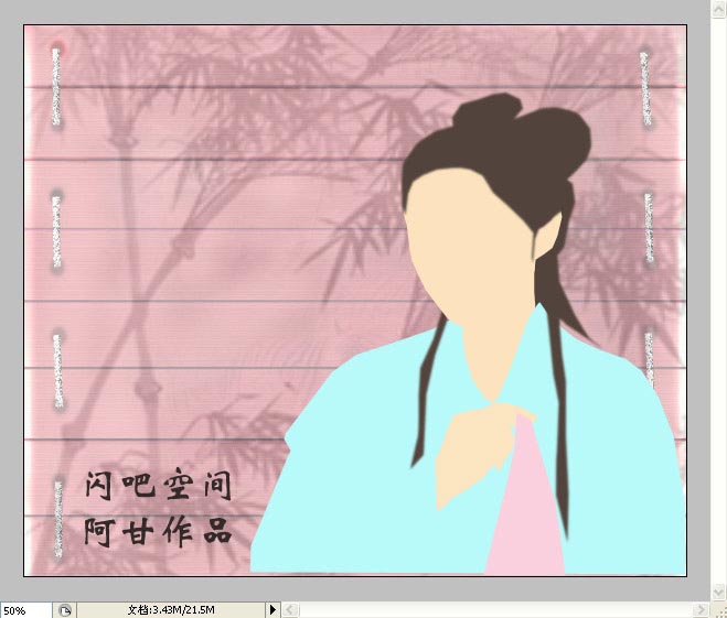 新建文档高1100,宽8400像索,选一背景底图,新建图层,钢笔勾形人物形状,分层填充色彩,一种色彩分为一层填充;