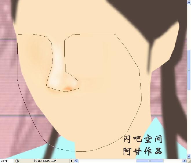 在皮肤层上用钢笔勾出鼻子形状,加深减淡手法来表现明暗关系;