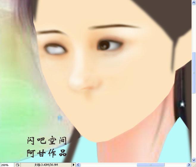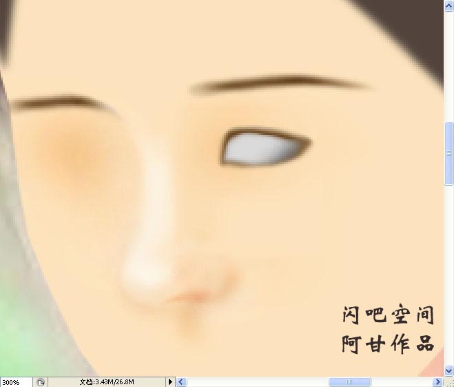 接着开始画眼睛,新建图层,勾出眼形,眼外框填充褐色,再建一层,眼内框填充白色,稍稍模糊一下;