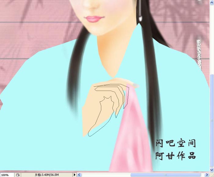 8,接着画手,在手的原图层上用加深减淡工具来画,勾出形状,用放大镜放大,细细的画。