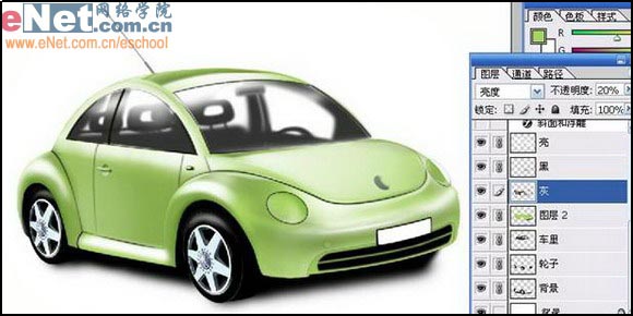 5、在车身下新建图层,添加车轮。
