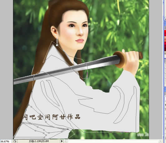 12.现在衣服好看多了,画面也很诣和,最后给小龙女添加一点头饰便可以了,然后合并所以图层保存得出最终效果: