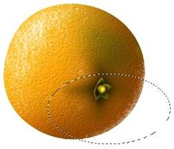21、在所有图层下(不包括背景层)新建一个图层,命名为“投影”。用“椭圆选框工具”创建一个椭圆选区(如图5.2-22所示)。执行菜单栏上的“选择→变换选区”命令,对选区稍加移动、旋转操作后,填充“褐色”(色彩接近即可)。用“主直径”较大、“硬度”较低的“橡皮擦工具”修改一下,投影的效果就完成了(图5.2-23)。