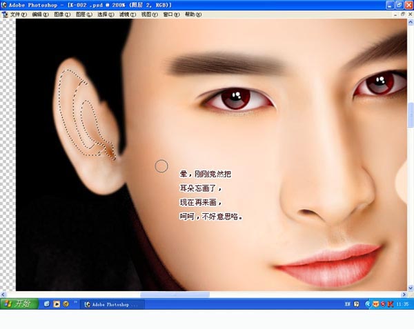 晕,刚刚竟然把耳朵忘画了,现在再来画,哥哥,不好意思咯。