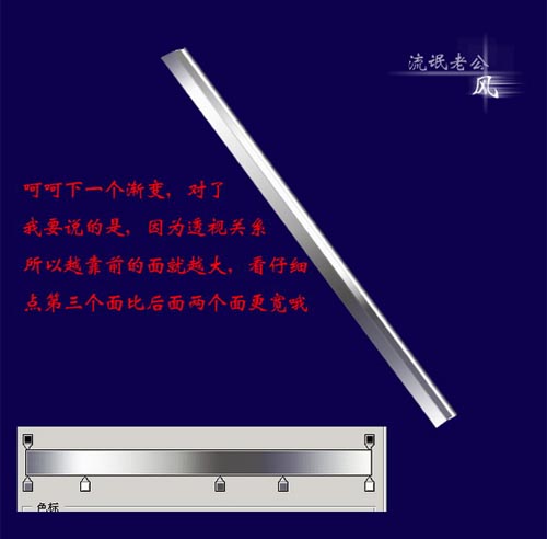 呵呵,下一个渐变,对了,我要说的是,因为透视关系,所以越靠前的面就越大,看仔细点,第三个面比后面两个面更宽哦