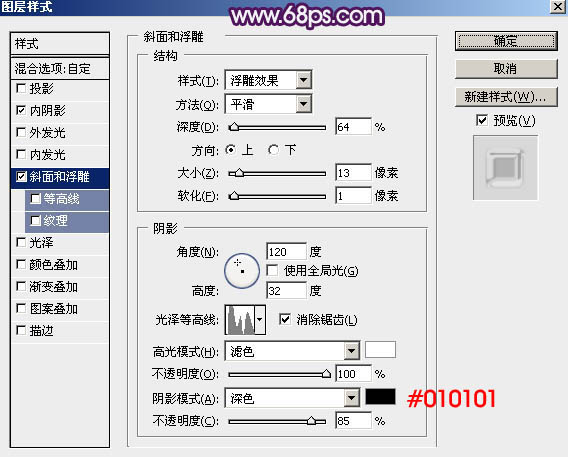 斜面和浮雕:光泽等高线需要点击曲线图标后自己设置如图20,其它设置如图19。