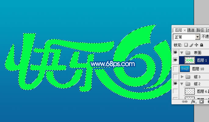 4、按住Ctrl键点击文字缩略图载入文字选区,如下图。