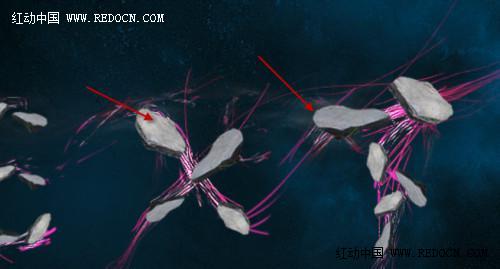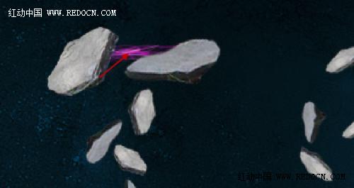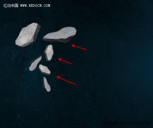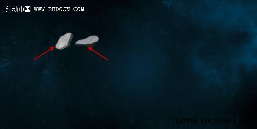 3、复制石块图层并粘贴到之前的操作文档,用自由变换工具调整石块大小并旋转到对应位置,效果如下。