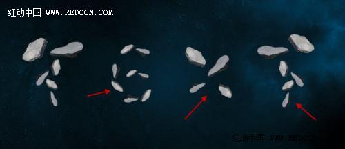 8、不断重复步骤,为所有的岩石字母添加类似的线条效果。