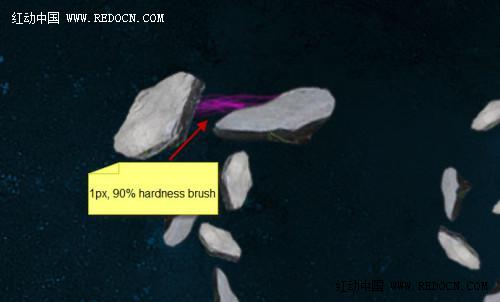 6、现在,最有趣的部分,我们准备绘制一些线条效果!使用1px,90%硬度的画笔绘制如图所示的紫红色线条。