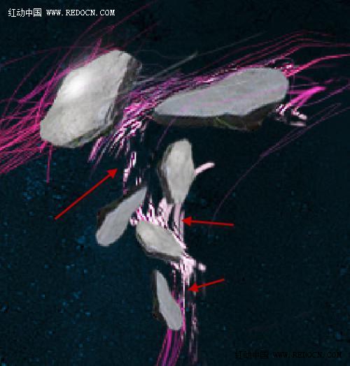 7、使用相同设置的笔刷,绘制另一些淡粉色的线条。