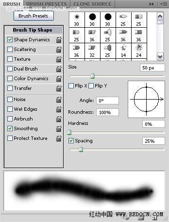 17、选择一个软刷,更改设置如下。画笔笔尖形状: