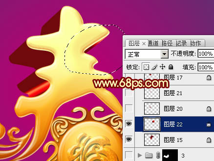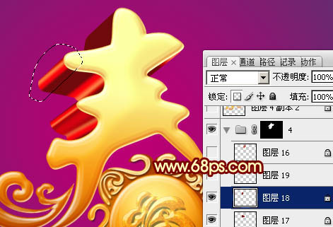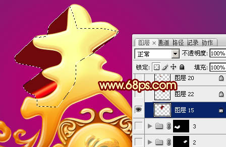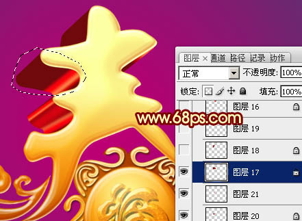 17、在背景图层上面新建一个组,调出立体面的选区,给组添加图层蒙版。在组里新建一个图层,用套索勾出下图所示的选区,加上图33所示的线性渐变色。