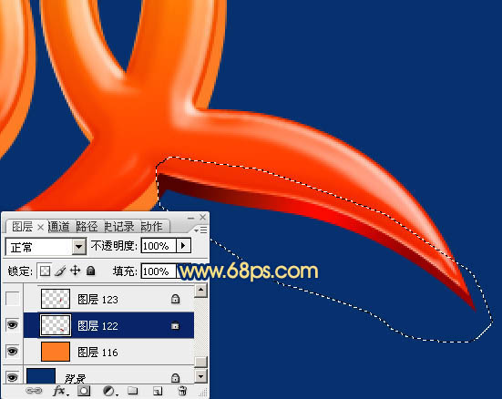 11、在组里新建一个图层,现在开始渲染立体面的各个面的质感。用套索工具勾出下图所示的选区,选择渐变工具,颜色设置如图18,拉出土19所示的线性渐变。