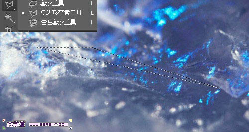 10、我们用多边形套索工具,在我们的素材图上截取如下的形状。