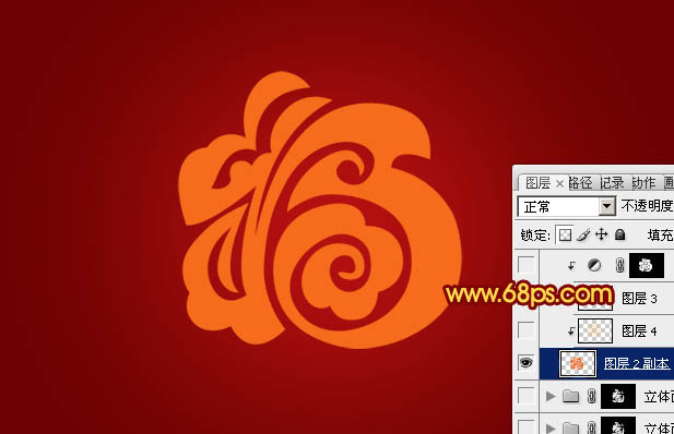 3、新建一个组,命名为“表面”,打开图4所示的文字素材,拖进来。锁定图层不透明度后把文字填充橙红色,如图5。