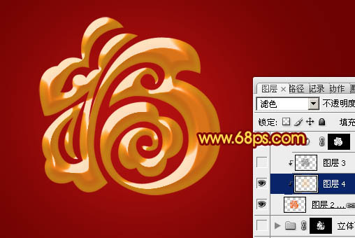 5、调出文字选区,新建一个图层填充橙黄色:#F8BA09,混合模式改为“滤色”,取消选区后添加图层蒙版,用黑色画笔把高光部分擦出来,效果如下图。