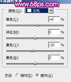 18、在图层的最上面创建可选颜色调整图层,对白色进行调整,参数设置如图29,效果如图30。