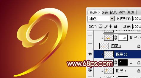 > 修改 > 收缩,数值为2,确定后再羽化1个像素,然后按Delete 删除,混合模式改为“滤色”,效果如下图15。