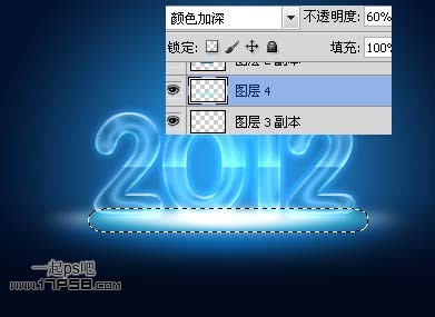 15、新建图层4,前景色#88F4FF涂抹,图层模式颜色加深,不透明度60%。