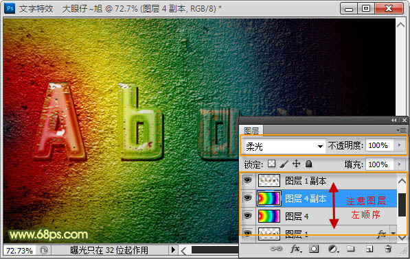 11、新建一个空白图层,用渐变工具加上一些彩虹渐变,混合模式改为“柔光”,如下图。