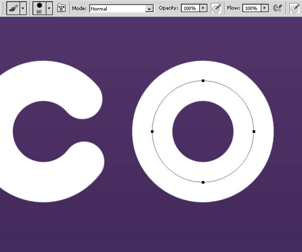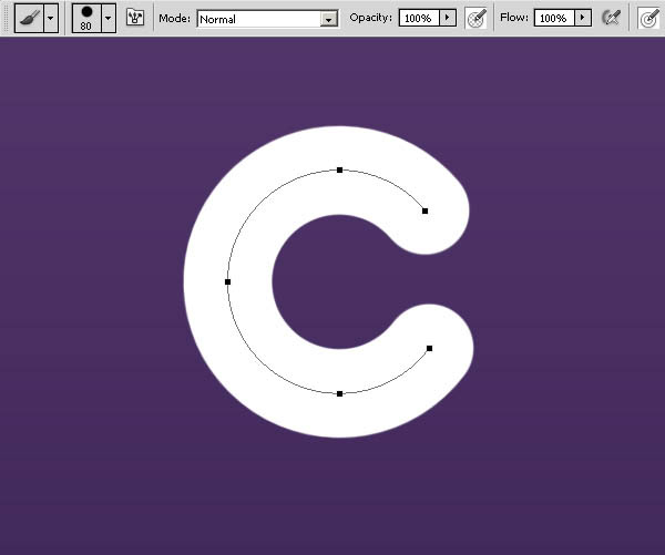 4、选择画笔工具(B)大小80像素(这里的笔刷大小按照你的字母在文件中的大小)。创建新的图层,然后按Alt