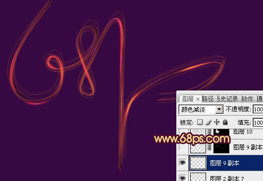 9、混合模式改为“颜色减淡”,按住ALt键添加图层蒙版,用白色画笔把需要加强的部分擦出来,再把背景图层显示出来,效果如下图。