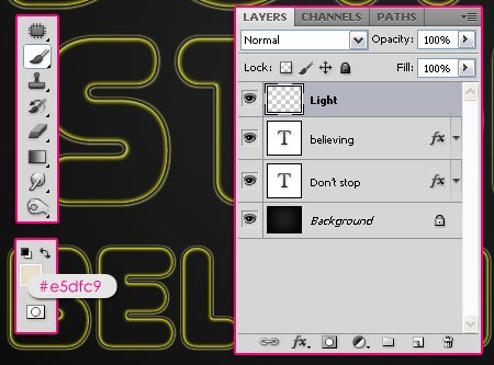 e5dfc9。在所有图层的上方创建一个新层并命名为“Light”。