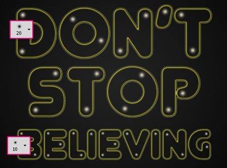 12、使用画笔工具开始在字母上点缀圆点。使用一个柔软的圆形笔刷,并设置其大小20(大字体),小字体为10。
