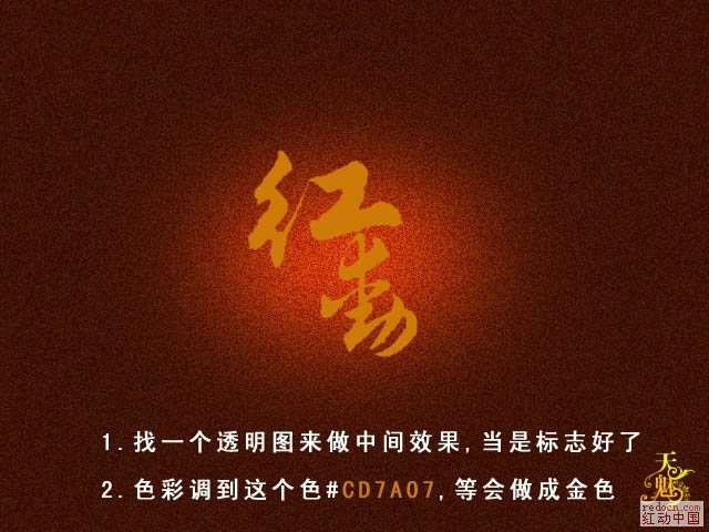 8、文字或图形的颜色用橙黄色:#cd7a07,效果如下图。