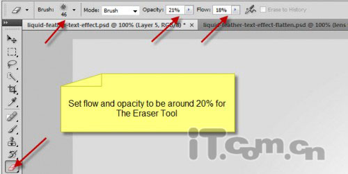 10、选择橡皮擦工具,在属性栏中使用下图所示的设置(与前面步骤的画笔设置相同),如图所示。