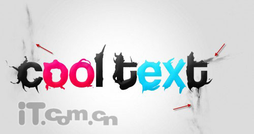 13、下面我们添加一些发光亮点的效果,使用柔角的白色画笔工具在文字的周围随机添加一些点,如图所示。