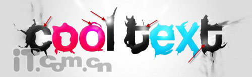 16、把制作好的光带移动到文字的左右两侧,如图所示。