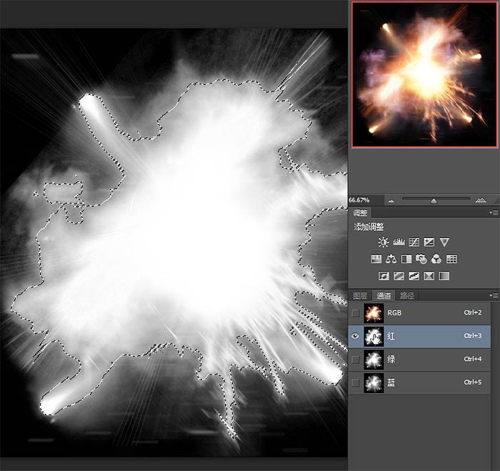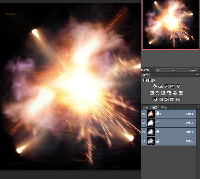 1、一般大家使用此类素材的时候都是使用滤色等方法,但是你会发现滤色模式会造成画面变亮,色差等问题。用一般的抠图方法又会发现经常残留黑色。解决方法就是重建颜色通道,来去掉里面黑色的部分。