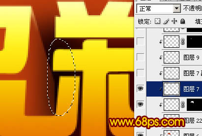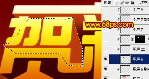 7、新建一个图层,用钢笔勾出下图所示的选区,羽化3个像素后填充橙黄色。