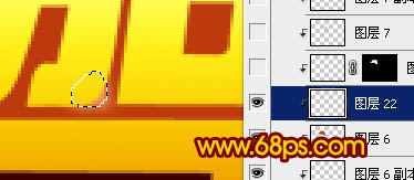 8、新建一个图层,同样把下图所示的选区部分填充橙黄色,多出的部分再用钢笔勾出后删除。