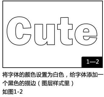 2、将字体的颜色设置为白色,给字体添加一个黑色描边,效果如下图。