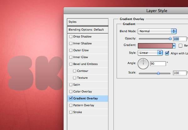 8、然后把文字添加混合选项,渐变叠加,颜色为#d19494和#ab6e6e。