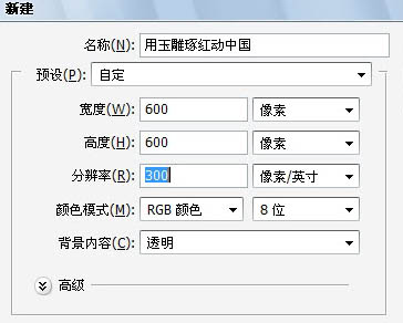 1、根据字的内容新建一个文件,800*800,分辨率300,背景透明,颜色8位。