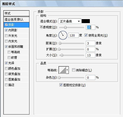 8、选中复制后那层,点“图层-图层样式-混合选项”在弹出的面板中进行如下参数设置。