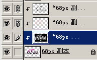 > 图层样式 > 创建图层,即可得到3个新的图层,如下图。把这三个新的图层合并为一个图层,加上图层蒙版,用黑色画笔把下半部分擦掉,效果如图8。