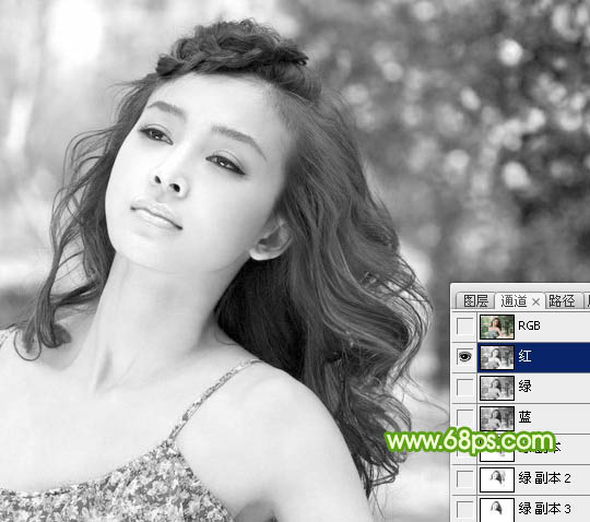 1、打开素材图片,进入通道面板,先观察三个通道,如果1