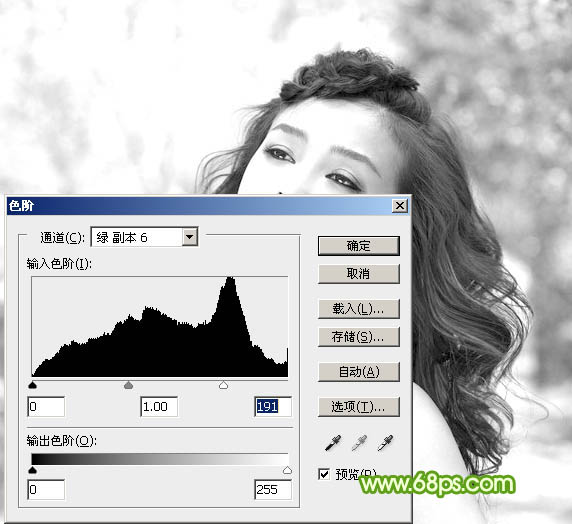 + L 调整色阶,调后面的高光滑块,边调边看发丝的变化,细节开始丢失时就不要再调了,如下图。