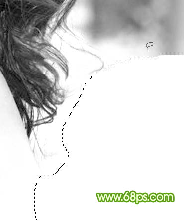 7、第一段基本完成,用套索把发丝外部区域选取出来填充白色。