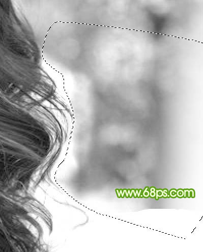 10、用套索选取头发外围部分,填充白色,第二段也顺利完成。