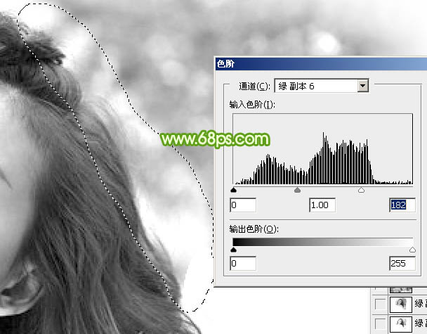 9、调的时候不一定要把灰色都调白,头发与灰色间如果出现白色的空隙也可以,这样避免丢失细节,如下图。
