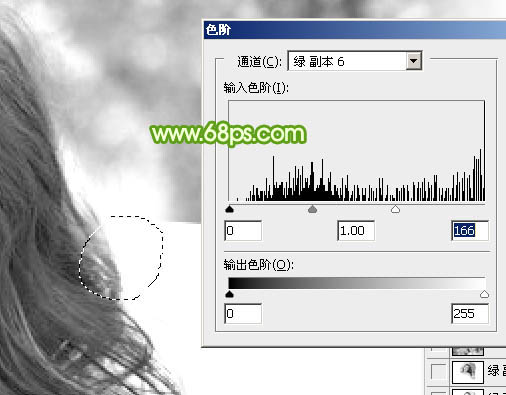 12、再从这一段的底部开始把有灰色的部分选取出来,适当羽化后调亮。